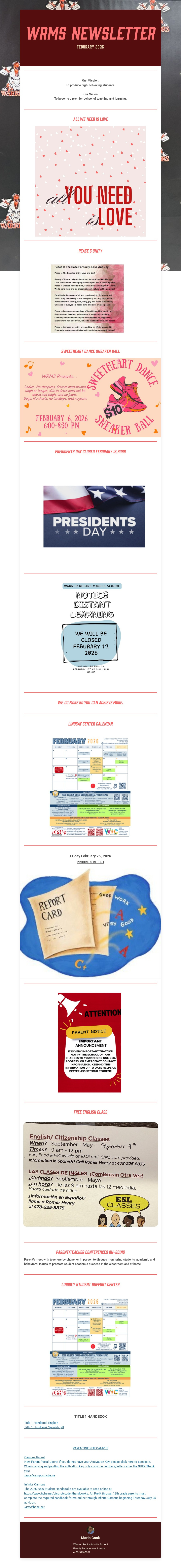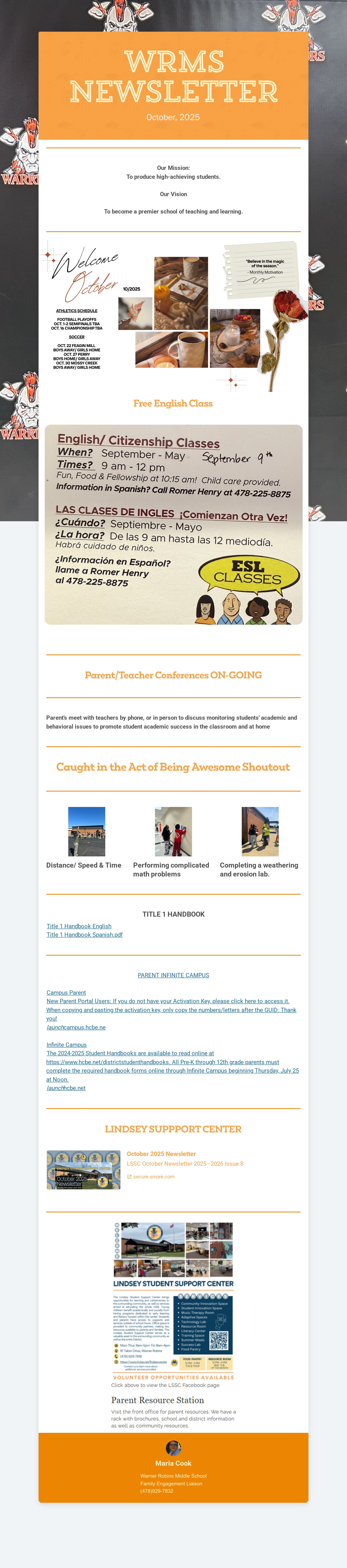 Warner Robins Middle hosts activities throughout the year to build strong family engagement which supports a partnership among the school, families and the community to improve student academic achievement. We believe that family engagement is the participation of families in all areas of their children’s education and development, recognizing that families are the primary influence in their children’s lives. Check the school's social media pages, the school sign, newsletters and call-outs for the most current information on school events.